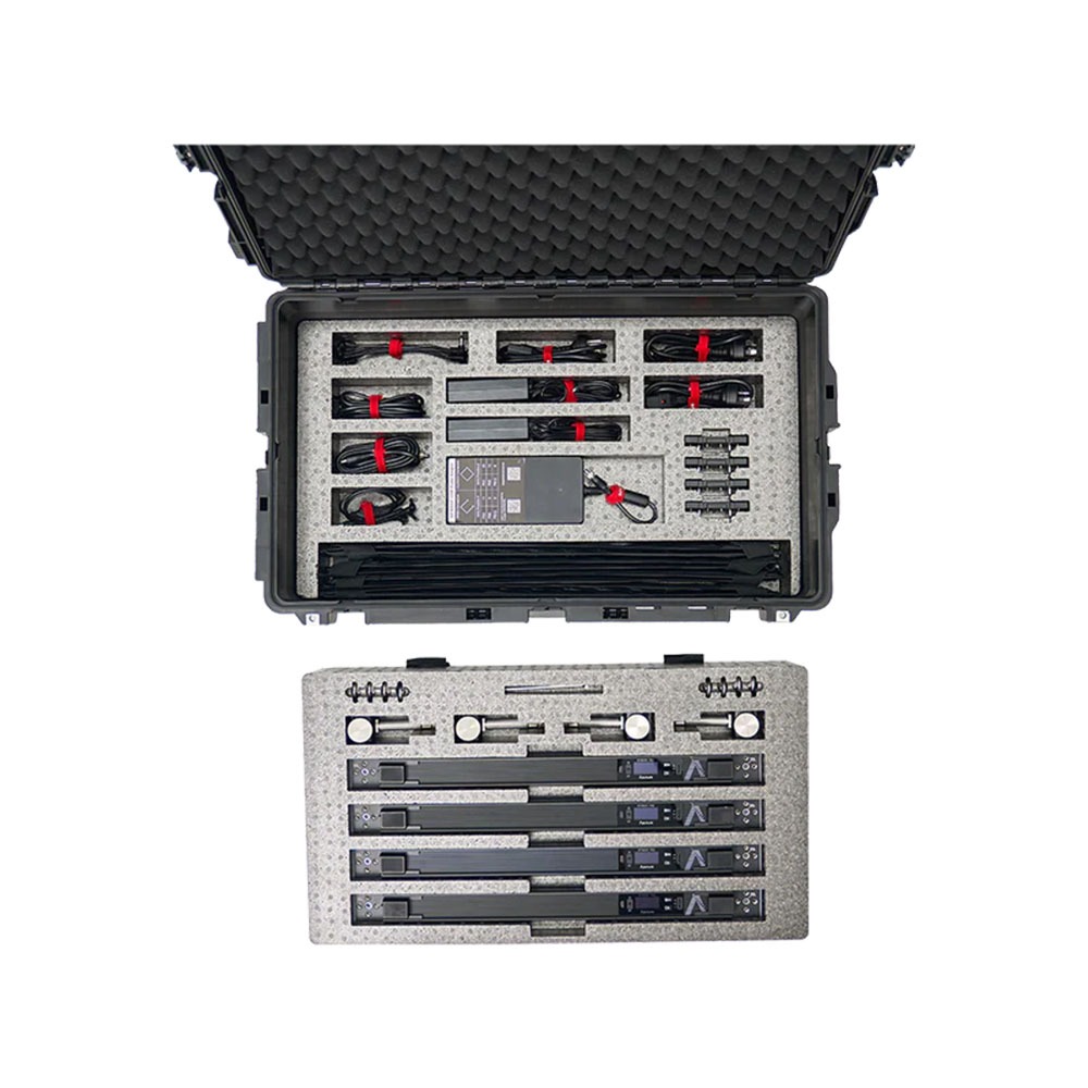 The 4-Light Kit expands this expansive multitool’s capabilities, with not only four times the available light, but also additional DC male-to-male power cables, adapters, and light control grids in a sturdy hard case to extend your creative possibilities. And in addition to charging each light individually, the 4-Light Kit is equipped with a 330W Power Adapter with 4-Way Splitters that can simultaneously charge all fixtures in or out of the case.