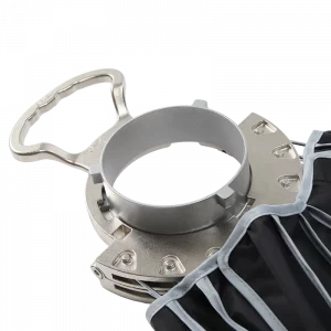 The Quick Dome 90 is a 90cm (3ft) circular Bowens mount softbox built for fast, reliable light shaping on set. Its quick release latch mechanism allows users to tension the steel support rods on the speed ring within seconds, streamlining both setup and teardown. The extended lateral side handle makes mounting and unmounting easy and controllable, and Quick Dome 90 packs flat for storage and transport. Includes 1 and 2-stop diffusion, internal baffle, and 40° light control grid.