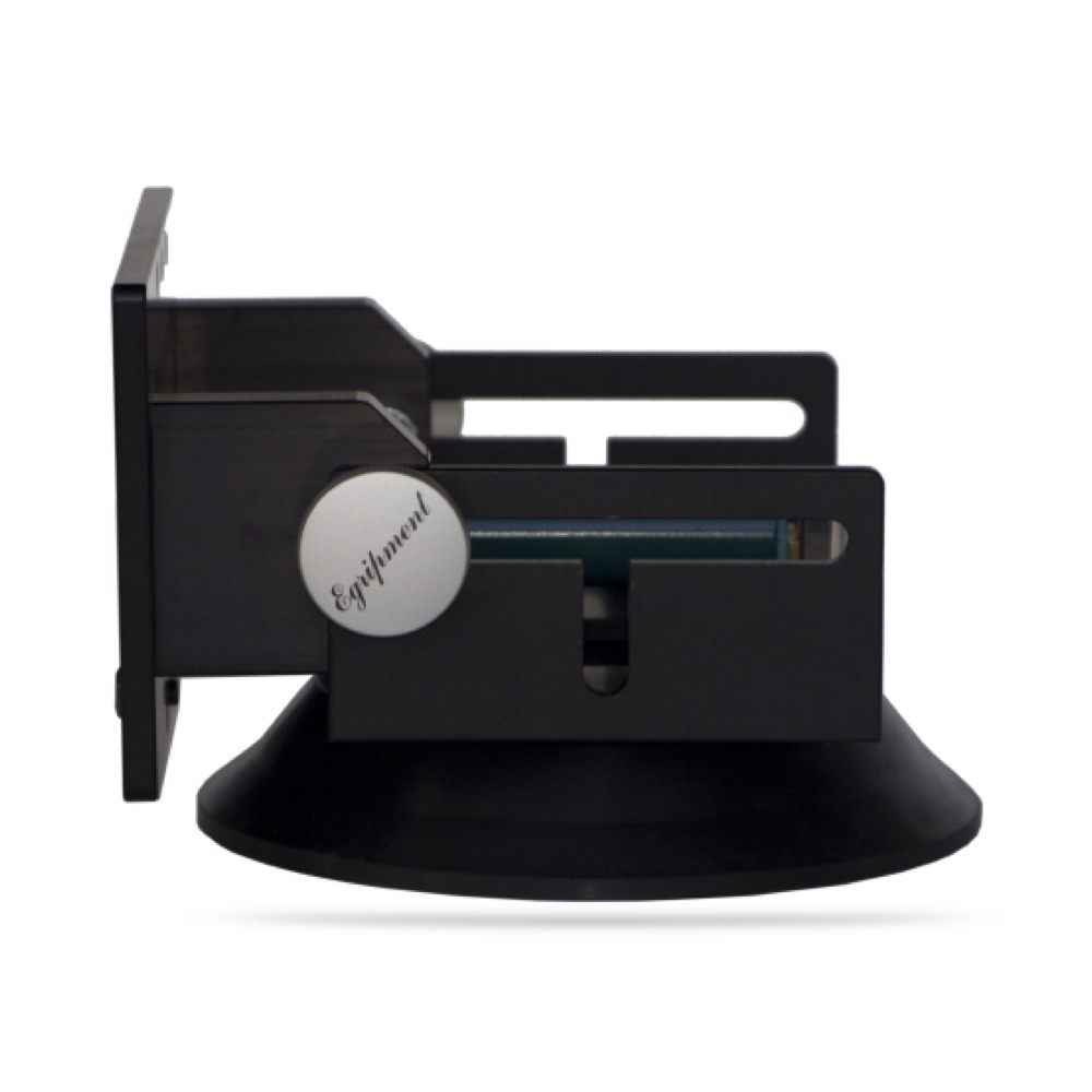 The Power Grip car mount from Egripment comprises a large suction cup and an integrated, hand operated, vacuum pump.