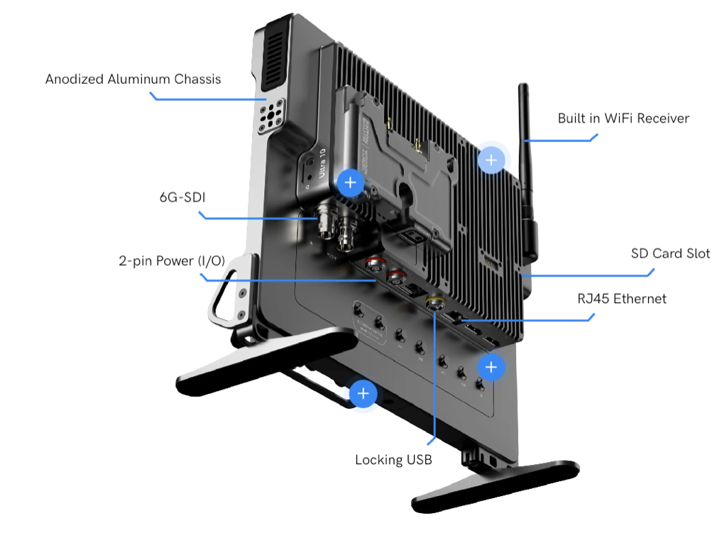 Perfect for focus pullers, pursuit vehicles, director’s cages, DITs, multi-camera studios, and anyone who desires maximum flexibility from their monitor.