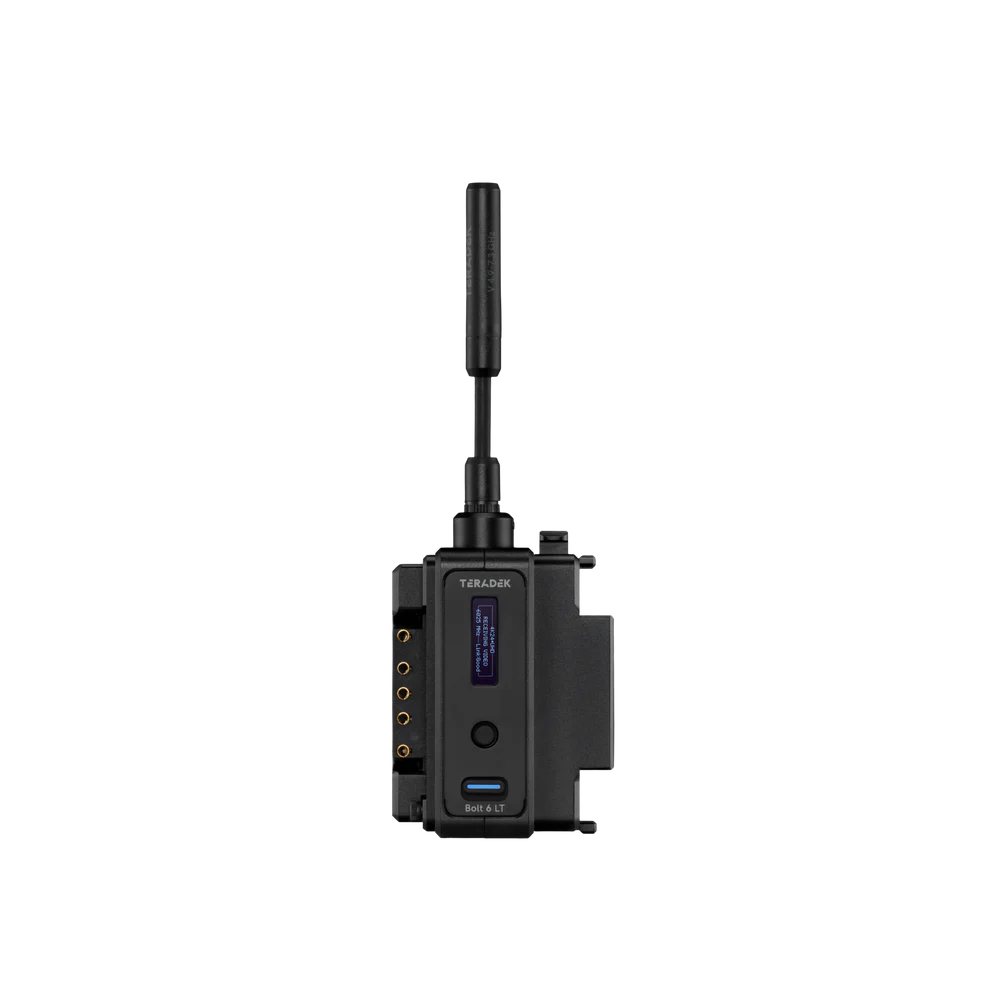 Bolt 6 LT RX is a wireless video receiver that supports up to 1080p60 10-bit 422 HDR video over 3G-SDI, or 4K30 over HDMI. Bolt 6 uses Teradek’s patented Zero-Delay silicon chip to send wireless video over 5GHz and 6GHz radio frequencies., with line of sight transmission up to 1500 feet.