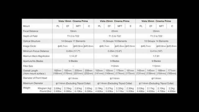 The Vista One series area limited quantity manufacture lens series from Tokina Cinema.